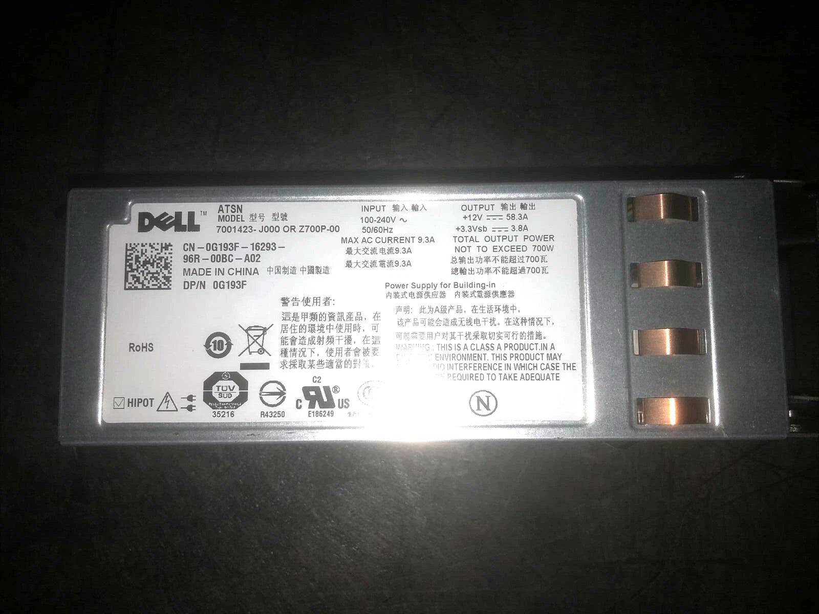 Dell 700W G193F 7001423-J000 (CN-0G193F-16293-84B-00W-A00) PowerEdge R805 Redundant Server Power Supply